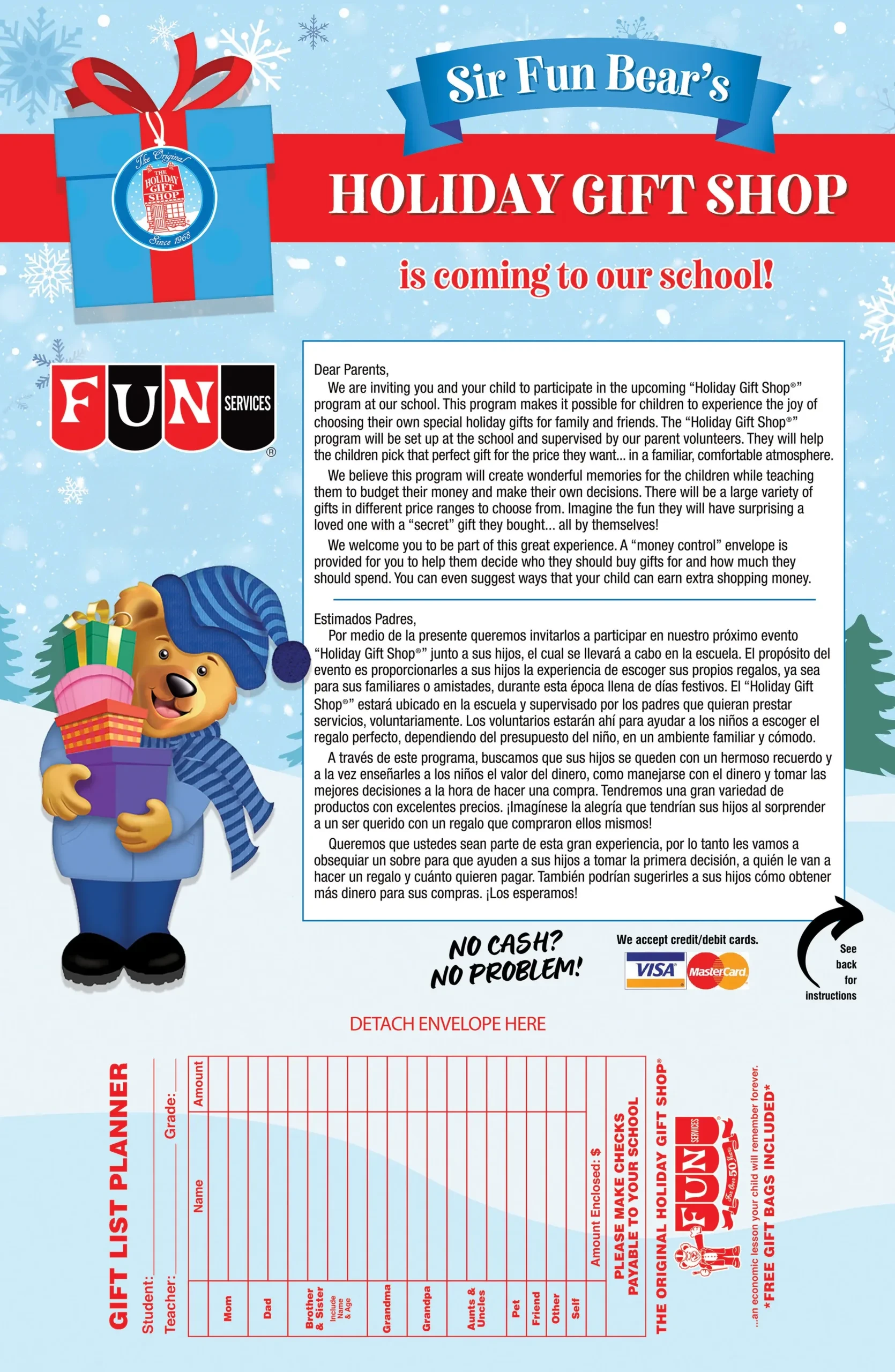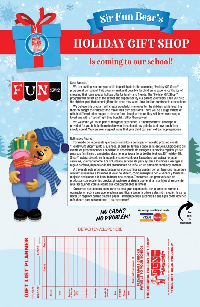 We realize that not all schools are created equal. Each has its own unique demographics and needs. With Fun Services, you choose whether the holiday shop will be a fund raiser or a service to the children. For those schools using their shop as a fund raiser, we provide guidelines/suggestions on how to mark up the merchandise. It is totally up to you, you are not locked in to a specific profit margin as is the case with other gift shop companies.